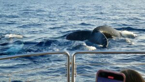 We sat in the back of the spacious catamaran. We saw lots of adult Humpback Whales up close. And I mean UP CLOSE! Right next to the boat.