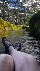 Right before you reach the rocky beach you must cross a small river that has a strong current. Here you either jump boulders and balance on stones to get across or else wade knee deep across. Either way, I saw people falling in the water. I was afraid to boulder hop but the draw of the beach (my destination) pushed me to do it.