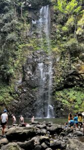 Our local guide told us about the different plants along the path. The payoff for this difficult trek should have been the 120’ waterfall, but soon after we got there the crowds arrived. There’s a pool beneath the falls where crazy people swim in the very cold water.