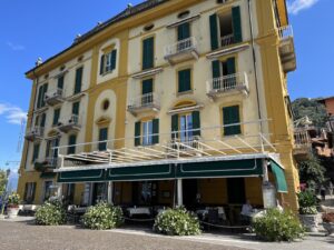 Once you arrive at Varenna’s train station, follow the blue painted pedestrian lane down to the main road. Less than a 10-minute walk from the train station, this charming hotel built in 1896 is right across from the harbor and ferry landing. Owned by the same family for four generations (Titti, the mom and her children Martina and Luigi run the hotel). Our room had a Juliet balcony offering a scenic view of the lake and a side balcony you could sit on and watch the people in the square. The corner room was spacious, comfortable, and quiet during the night. Breakfast is included and very good.
