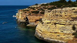 You can also walk to the Benagil Cave. Park next to the Benagil beach and walk east along the Seven Hanging Valley Trail which follows the coast. You can only see the cave from above and since it’s fenced off for your protection it is difficult to get a good view.