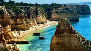 Inside Benagil Cave have your camera ready. Turquoise water, a small beach and a large skylight above is the reason this is a place you’ll remember.