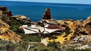 This family-owned restaurant is located at Praia de Benagil (Benagil Beach). It sits on the side of a hill overlooking the ocean.