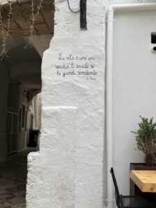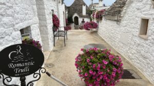 Alberobello is known for its Trulli structures. A Trulli is a white-washed stone hut with a conical roof. These huts have been around for centuries. Alberobello is designated a UNESCO World Heritage Site. I enjoyed seeing these unique structures despite the rain.