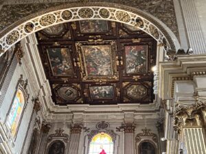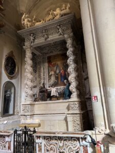 Piazza del Duomo is a grand home enclosed by buildings and accessed via a gateway. Inside the square is the Cathedral of Lecce rebuilt in 1659. The cathedral’s exterior is adorned with saints and cherubs in the baroque style. Inside there are 12 side chapels each with its own altar. The altars are elaborately decorated with paintings and are distinct from each other.